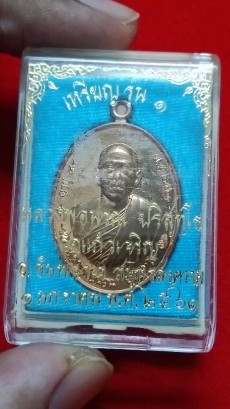 เหรียญรุ่นแรก หลวงพ่อนวณ วัดแก้วเจริญ เนื้อทองแดง สวยๆพร้อมกล่อง