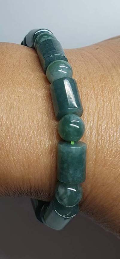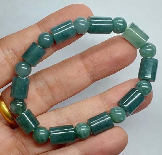 สร้อยข้อมือหยกพม่า เม็ดกลมสลับทรงกระบอก ขนาด 7 มิล