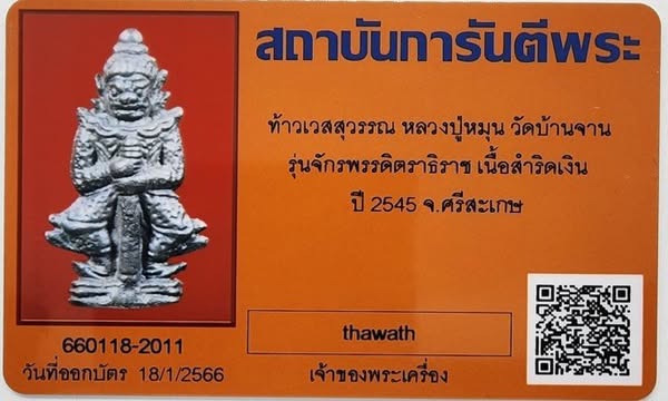 พระสวย ลุ้นแชมป์.. ท้าวเวสสุวรรณ รุ่นมหาจักรพรรดิตราธิราช เนื้อสัมฤทธิ์เงิน หลวงปู่หมุน วัดบ้านจาน พร้อมบัตรรับรอง