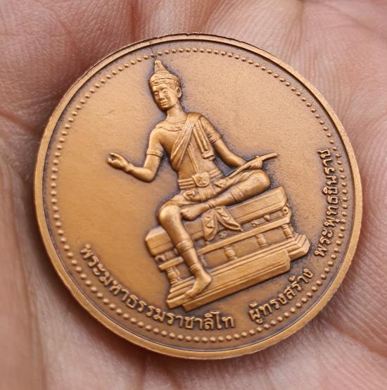 เหรียญพระพุทธชินราช ด้านหลัง พระมหาธรรมราชาลิไท ผู้ทรงสร้าง พระพุทธชินราช วัดพระศรีรัตนมหาธาตุ จ.พิษณุโลก ปี 2544