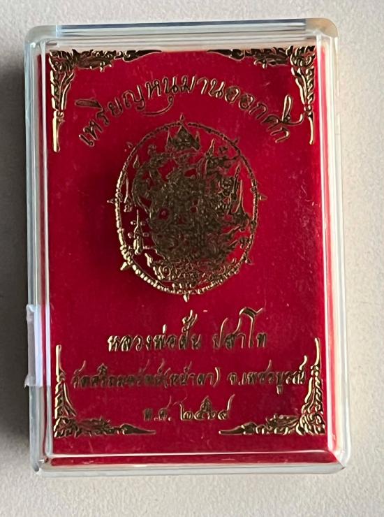 หลวงปู่ฝั้น ปสาโท หลวงพ่อฝั้น วัดศรีถมอรัตน์ เพชรบูรณ์ ท่านเป็นศิษย์ หลวงพ่อเดิม (สามเณรเลี้ยงช้างหลวงพ่อเดิม) หลวงพ่อกวย หลวงพ่อทบ รุ่น รุ่นหนุมานออกศึก ใบรายการเนื้อนวะ รายการก็ตรง แต่ที่ห่วงตอก ด เลขมงคล 189 ใบรายการเป็นเนื้อนวะ เเต่หูเหรียญตอก ด ตอก 9 รอบ เลขสวยๆ มีทั้งเลข 1 เลข 8 และเลข 9 ครับ
