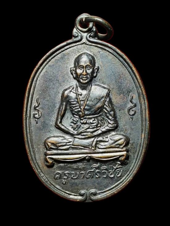 เหรียญครูบาศรีวิชัย วัดพันอ้น ปี 2512 เนื้อทองแดงรมดำ
