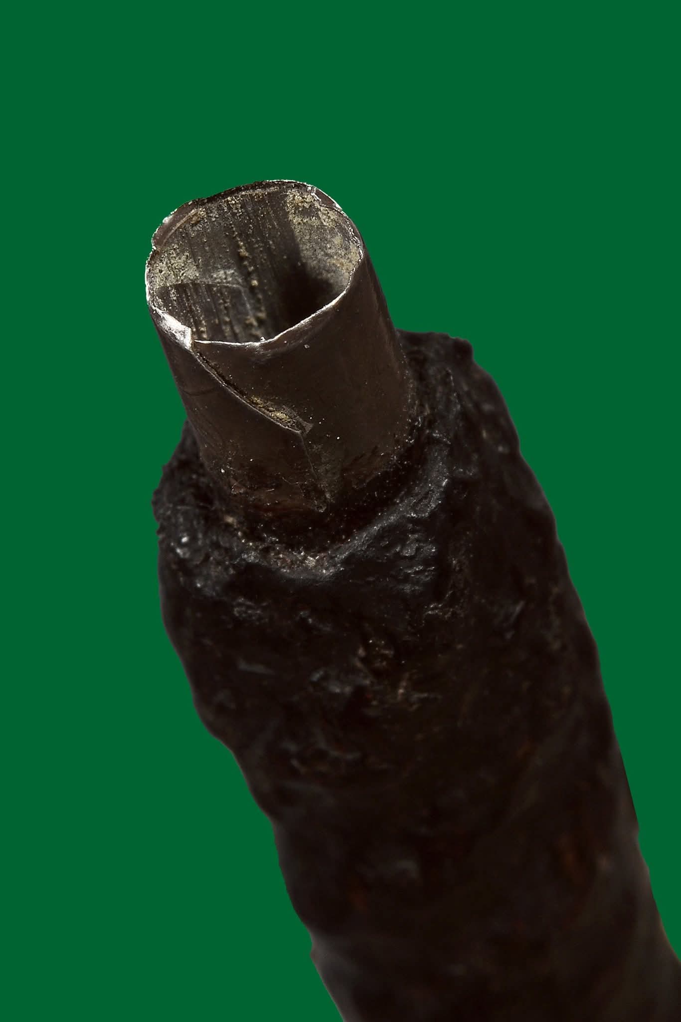 ลองพิจารณาดูครับ ตัวตะกรุดพอกผงคลุกรักจั่มรัก ส่องกับแดดออกแดง