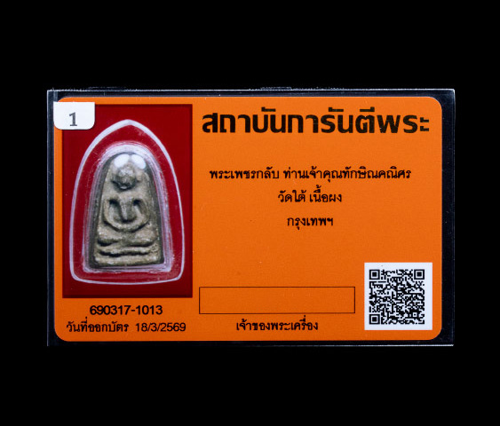 พระเพชรกลับ เจ้าคุณพระทักษิณคณิศร วัดใต้ เนื้อผง พุทธคุณ หลังจาร สมบรูณ์สุดๆ สวยแชมป์.. + บัตรรับรอง GPRA