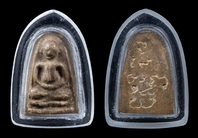 พระเพชรกลับ เจ้าคุณพระทักษิณคณิศร วัดใต้ หรือ วัดอินทาราม เนื้อผง หลังจาร นะโม