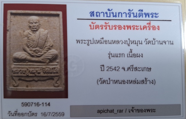 หลวงปู่หมุน พระผงรูปเหมือนรุ่นแรกปี 42 นั่งตั่งรับทรัพย์ สวยๆ พร้อมบัตร