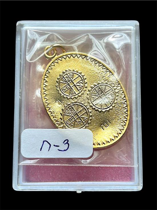 เหรียญยันต์สามดวงพุทธาลัย พลิกชีวิต วัดถ้ำขุนแผน "เนื้อชนวนกะไหล่ทอง" (กรรมการ) 2 โค้ด สร้างน้อย (ก-3) |