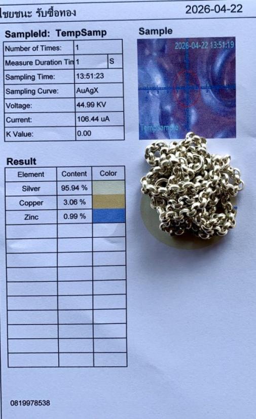 ซื้อมาไม่ได้ใช้ใส่ได้ไม่ถึง 5 ครั้ง ล้างทำความสะอาดมาอย่างดี พร้อมใบยิงเปอร์เซ็นต์จากเครื่องโลหะรุ่นใหม่ล่าสุด พอดีได้เส้นใหม่มาก็เลยมาแบ่งปันเพื่อนสมาชิก ซื้อตอนนั้นกรัมละ 100 บาท ตอนนี้มาวัดใจเคาะเดียว แบ่งปันให้เพื่อนสมาชิก