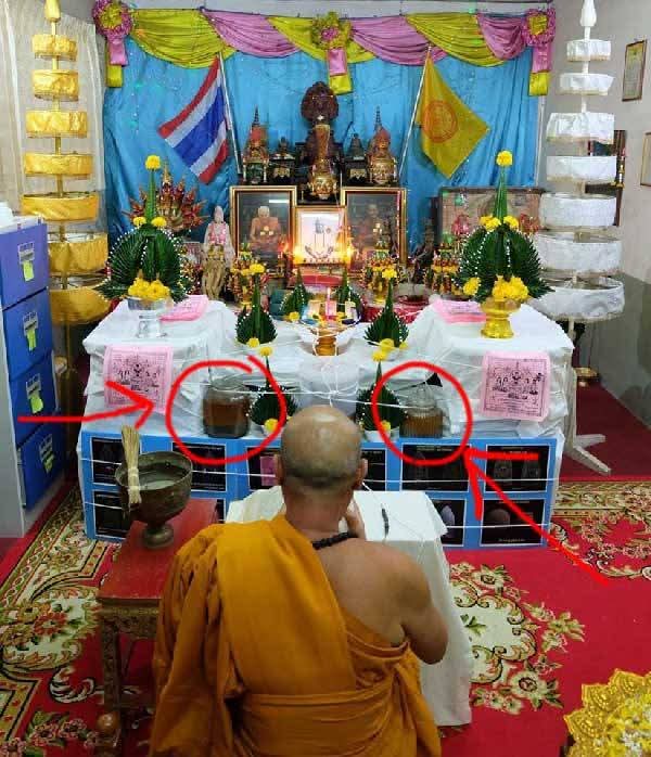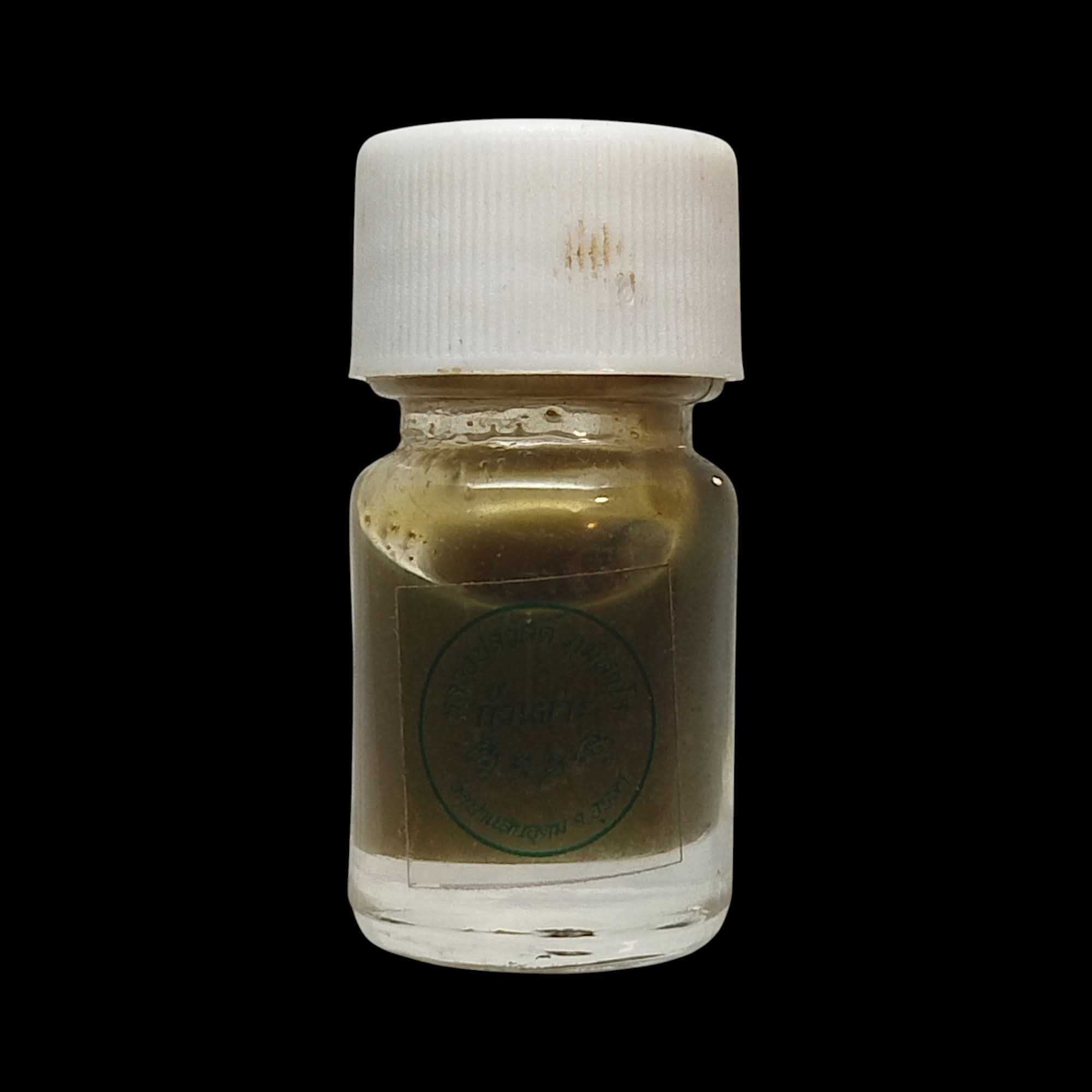 น้ำมันกั่วเผาะ ขวดใหญ่ เข้มข้น (บรรจุในขวดที่ใส่มวลสาร อ.เปล่ง บุญยืน) หลวงปู่สวัสดิ์ วัดป่าแสนอุดม (ศิษย์เอก อ.เปล่ง บุญยืน) แช่ตะกรุด 1 ดอก สภาพเดิม ๆ ไม่เคยผ่านการใช้ เมตตา-มหาเสน่ห์แรง ๆ หายาก