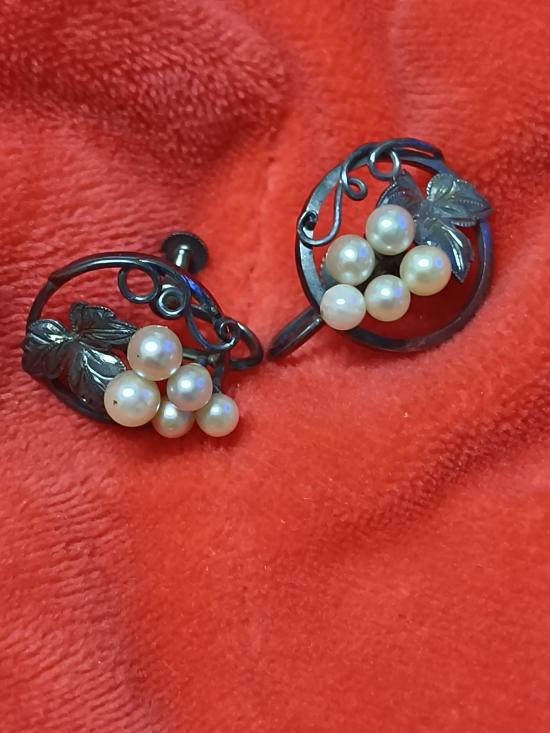 งานเก่าเก็บสะสมต่างหูเงินแท้มีประดับไข่มุกแท้ค่ะ