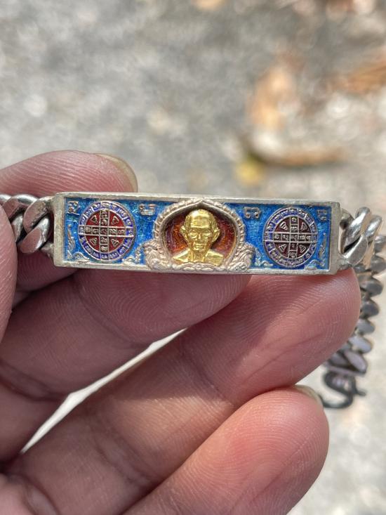 เลสหลวงพ่อรวย วัดตะโก อยุธยา รุ่น รวยทรัพย์แสนล้าน เนื้อเงินลงยาหน้าทองคำ ปี2561 ขนาด2฿