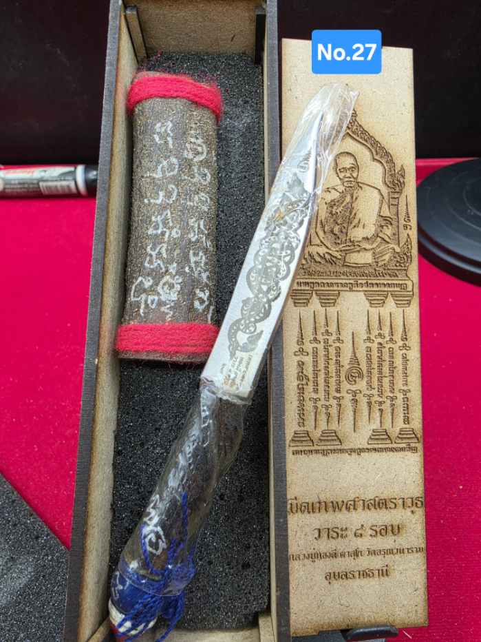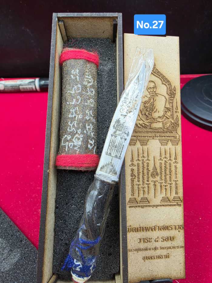 มีดหมอหนังช้างแท้ 2หน้า ลายสิงห์ กับ นาคเกี้ยว No.27วาระ 8 รอบหลวงปู่ทองดี จังหวัดอุบลราชธานี พร้อมกล่องไม้เดิมๆ |