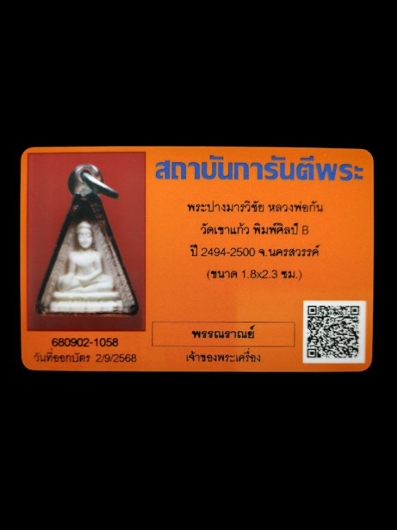 พระปางมารวิชัย เนื้องาแกะ หลวงพ่อกัน วัดเขาแก้ว มาพร้อมบัตรรับรองพระแท้เพิ่งออกมาใหม่ๆสบายใจได้ค่ะ