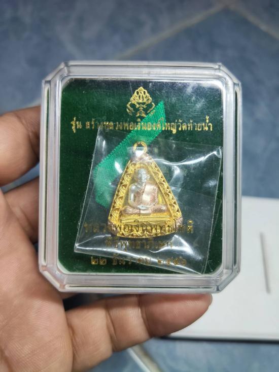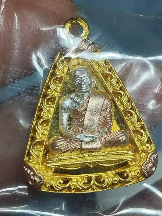 เหรียญจอบใหญ่ หลวงพ่อเงิน ปี 56 เนื้อบอร์นชุบ 3 K พิมพ์ใหญ่ กล่องเดิมซีลเดิม หมายเลขสวย 129 ครับ