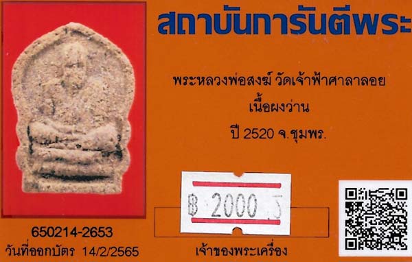 ขายขาดทุน!!!พระหลวงพ่อสงฆ์ ปี ๒๐ วัดเจ้าฟ้าศาลาลอย เนื้อผงว่าน+บัตรรับรองพระแท้*135