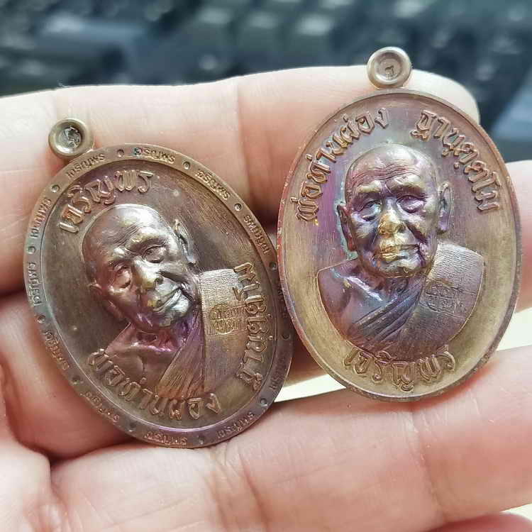 2-106 วัดใจ 100 ยกคู่ เหรียยญเจริญพร พ่อท่านผ่อง วัดแจ้ง จ.พัทลุง 2566 ช.962+ช.2824 กล่องเดิม