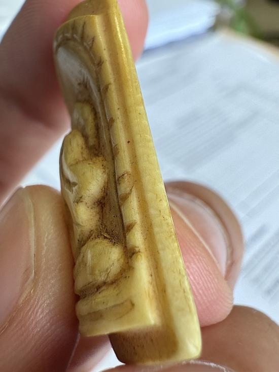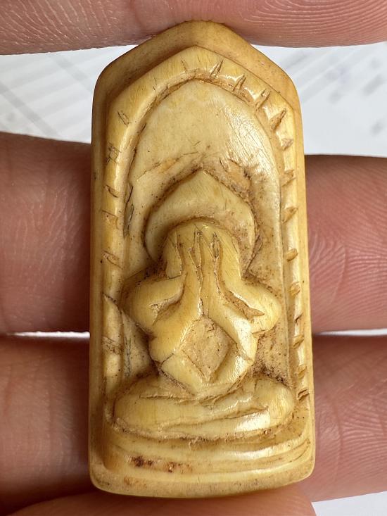 พระปิดตามหาอุตม์งาแกะ(ศิลป์ว่าวจุฬา) หลวงพ่อเดิม วัดหนองโพ จ.นครสวรรค์ องค์นี้ พระในรังเก่า เพิ่งแตกรังออกมาไม่นานนี่เองครับ (วัดขนาดองค์พระความกว้าง 2 cm. สูง 3.5 cm.) ถือว่าขนาดบึกบักนิยมเลยครับ พระปิดตาหลวงพ่อเดิม ที่สุดด้ายเมตตา มหาอำอาจ แคล้วคลาดนักแล "หลวงพ่อเดิม พุทธสโร วัดหนองโพ อ.ตาคลี จ.นครสวรรค์" พระเกจิอาจารย์ที่มีชื่อเสียงโด่งดังและเลื่องลือในด้านวิทยาอาคมแกร่ง และเข้มขลังของจังหวัดนครสวรรค์ ได้รับการยกย่องให้เป็น "เทพเจ้าแห่งเมืองสี่แคว" ท่านชอบเลี้ยงสัตว์พาหนะโดยเฉพาะช้างและม้า เพื่ออาศัยในการบรรทุกหรือลากเข็นสัมภาระต่างๆ ในช่วงที่ท่านชราภาพท่านก็ได้อาศัยขี่หลังช้างอีกด้วย เมื่อช้างตายลงหลวงพ่อเดิมก็จะเก็บงาช้างเอาไว้ บางทีลูกศิษย์ลูกหาก็หามาฝาก หรือบางทีก็มีผู้นำมาขาย ท่านก็จะเก็บรักษาไว้ เมื่อมีเวลาว่างก็จะนำมาแกะเป็นรูปองค์พระบ้าง นางกวักบ้าง หรือเครื่องรางของขลังต่างๆ อาจสืบเนื่องจาก "งาช้าง" นอกจากจะมีคุณวิเศษเฉพาะตัวแล้ว ยังสามารถใช้ทดสอบพิษในอาหารได้ด้วย พระเกจิคณาจารย์หลายๆ รูปจึงมักนิยมนำมาแกะเป็นองค์พระ และเครื่องรางของขลังต่างๆ รูปลักษณ์งาแกะของหลวงพ่อเดิมมีหลากหลายแบบ อาทิเช่น สิงห์ , พระปิดตา , นางกวัก , มีดหมอ เป็นต้น ครับ