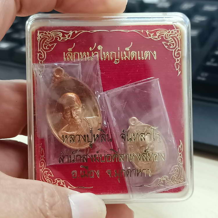 2-118 วัดใจ 100 ยกคู่ เหรียญเล็กหน้าใหญ่ เม็ดแตง หลวงปู่หลิน จันทสาโร สำนักสงฆ์บ่อศิลาหงส์ทอง จ.มุกดาหาร 2562 กล่องเดิม