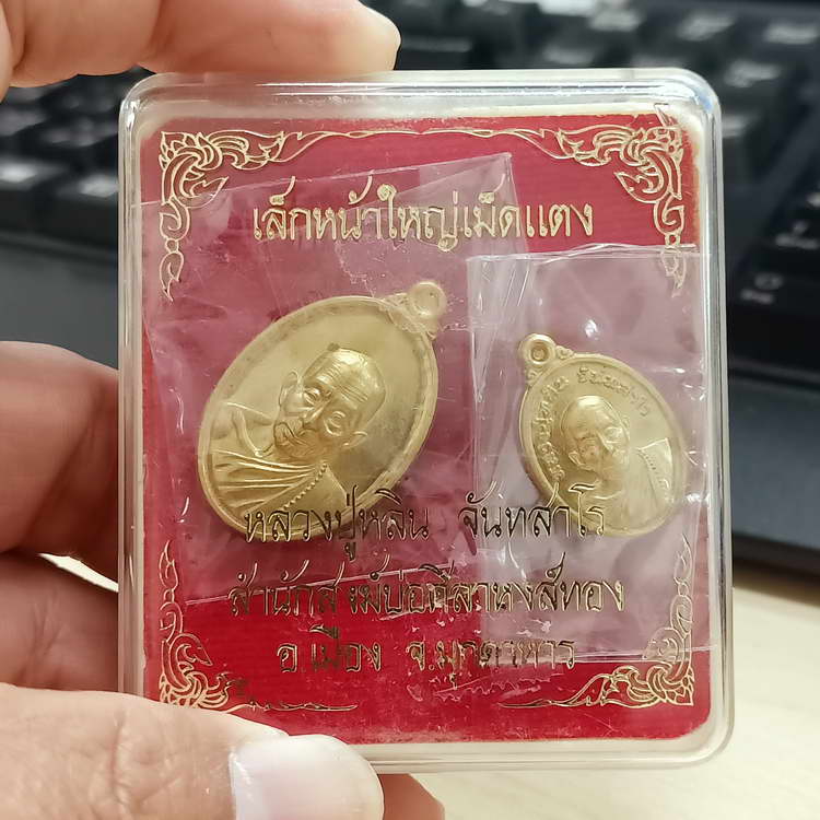 2-119 วัดใจ 100 ยกคู่ เหรียญเล็กหน้าใหญ่ เม็ดแตง หลวงปู่หลิน จันทสาโร สำนักสงฆ์บ่อศิลาหงส์ทอง จ.มุกดาหาร 2562 กล่องเดิม