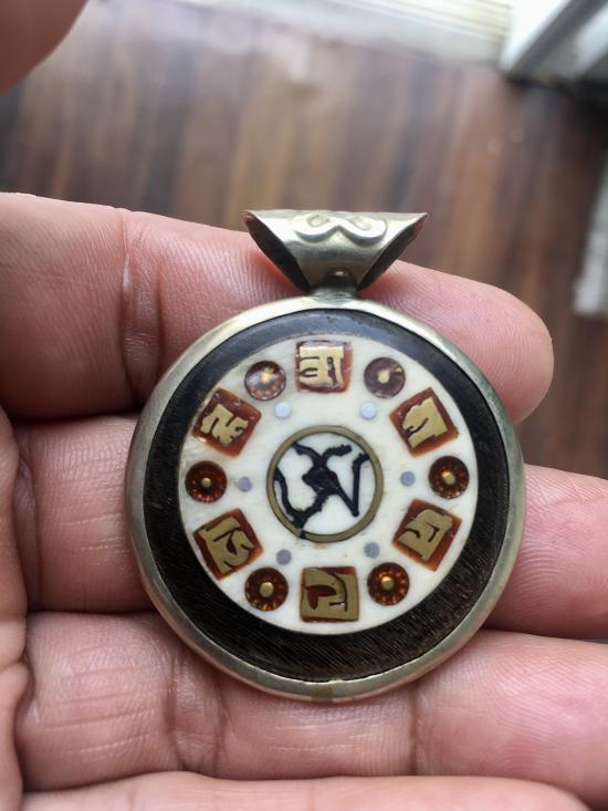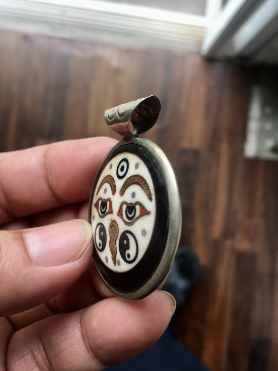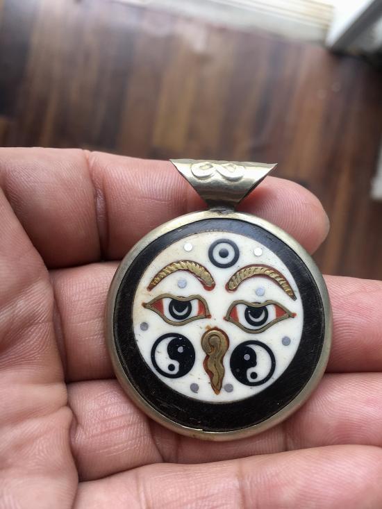 ล็อกเก็ตดวงตาสวรรค์ธิเบต ทำจากเขาจามรีและหินธิเบต จับขอบด้วยเงินผสม