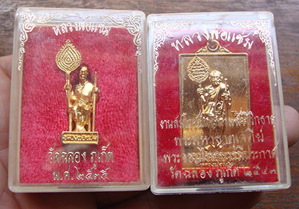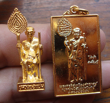 รูปหล่อ+เหรียญ นั่งถือพัดยศ หลวงพ่อแช่ม วัดฉลอง ภูเก็ต ( 2 องค์ ) กล่องเดิม สวยค่ะ