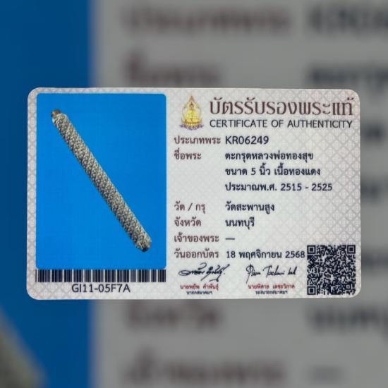 ตระกรุด หลวงพ่อทองสุข วัดสะพานสูง พร้อมบัตรรับรอง