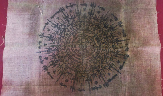ผ้ายันต์ผ้ายันต์มงกุฏพระเจ้า วัดสุทัศน์ ปี 2496 นะครับ (พระบ้านจากหิ้ง ครับ)