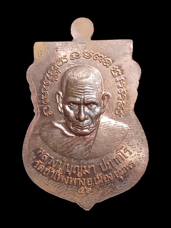 เหรียญหลวงพ่อทวด พิมพ์เสมาหน้าเลื่อน หลังหลวงปู่บุญมา ปภากโร วัดถ้ำโพงพาง จ.ชุมพร ปี๒๕๕๖ รุ่น"ปลดหนี้ เฮง เฮง" เนื้อทองแดง ตอกโค้ด หมายเลข"๑๘๖" เนื้อทองแดง(ผิวไฟ) รับประกันแท้และตามกฎ g-pra