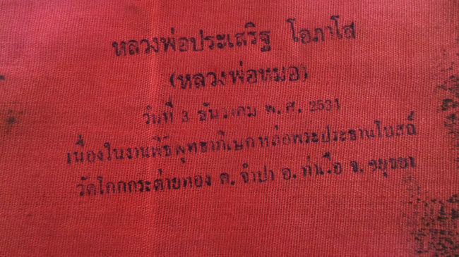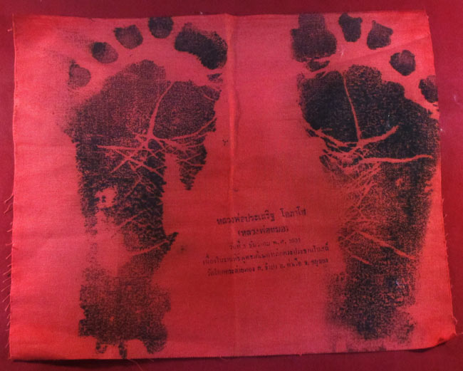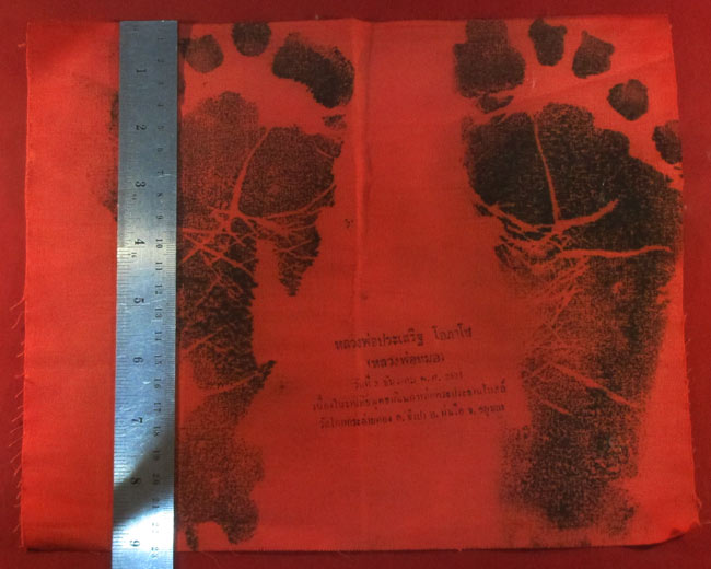 ผ้ายันต์ รอยท้าวปั้มสด หลวงพ่อประเสริฐ โอภาโส (หลวงพ่อหมอ) วัดโคกกระต่ายทอง อ.ท่าเรือ จ.อยุธยา ครับ (พระบ้าน ครับ)