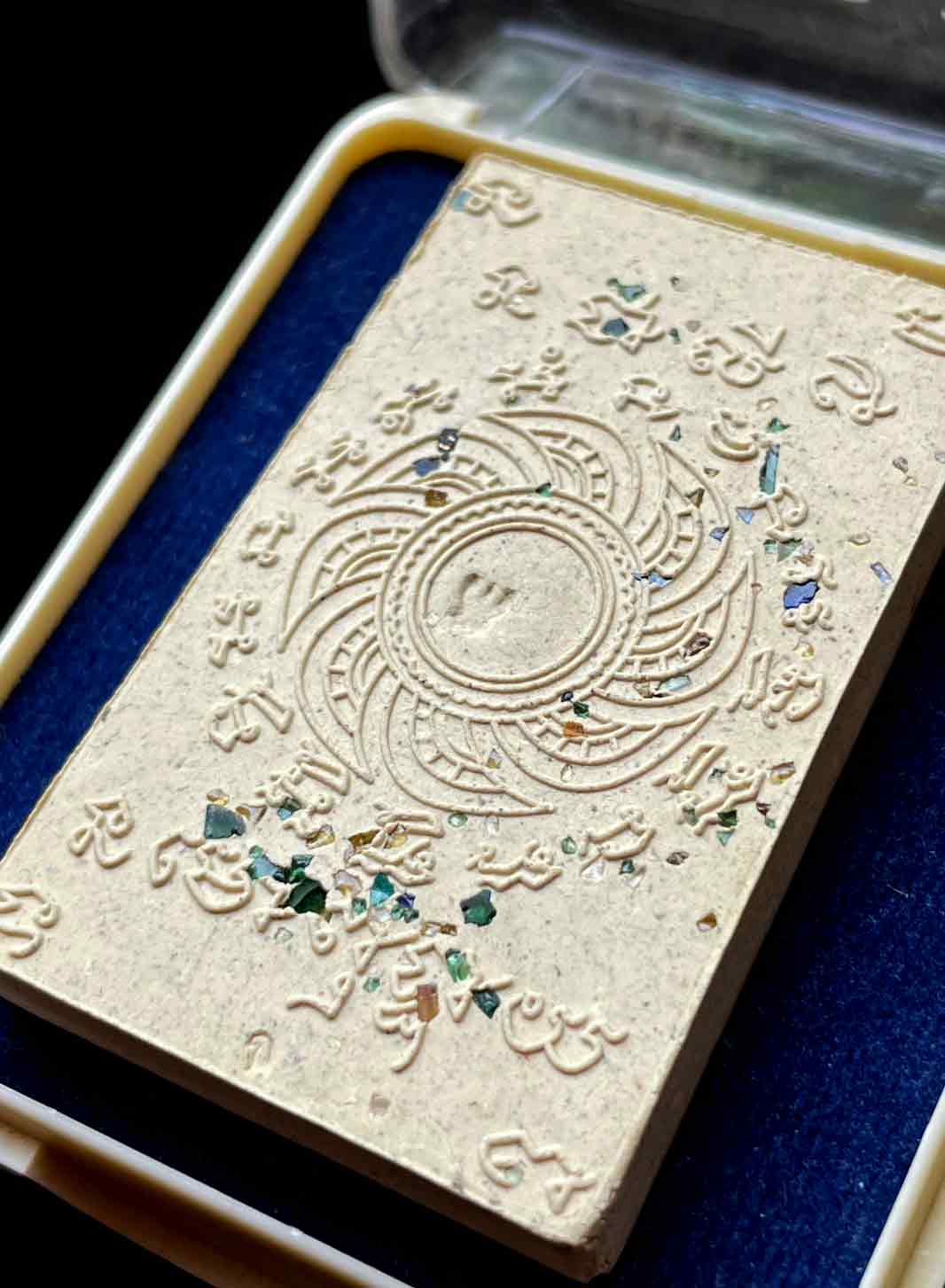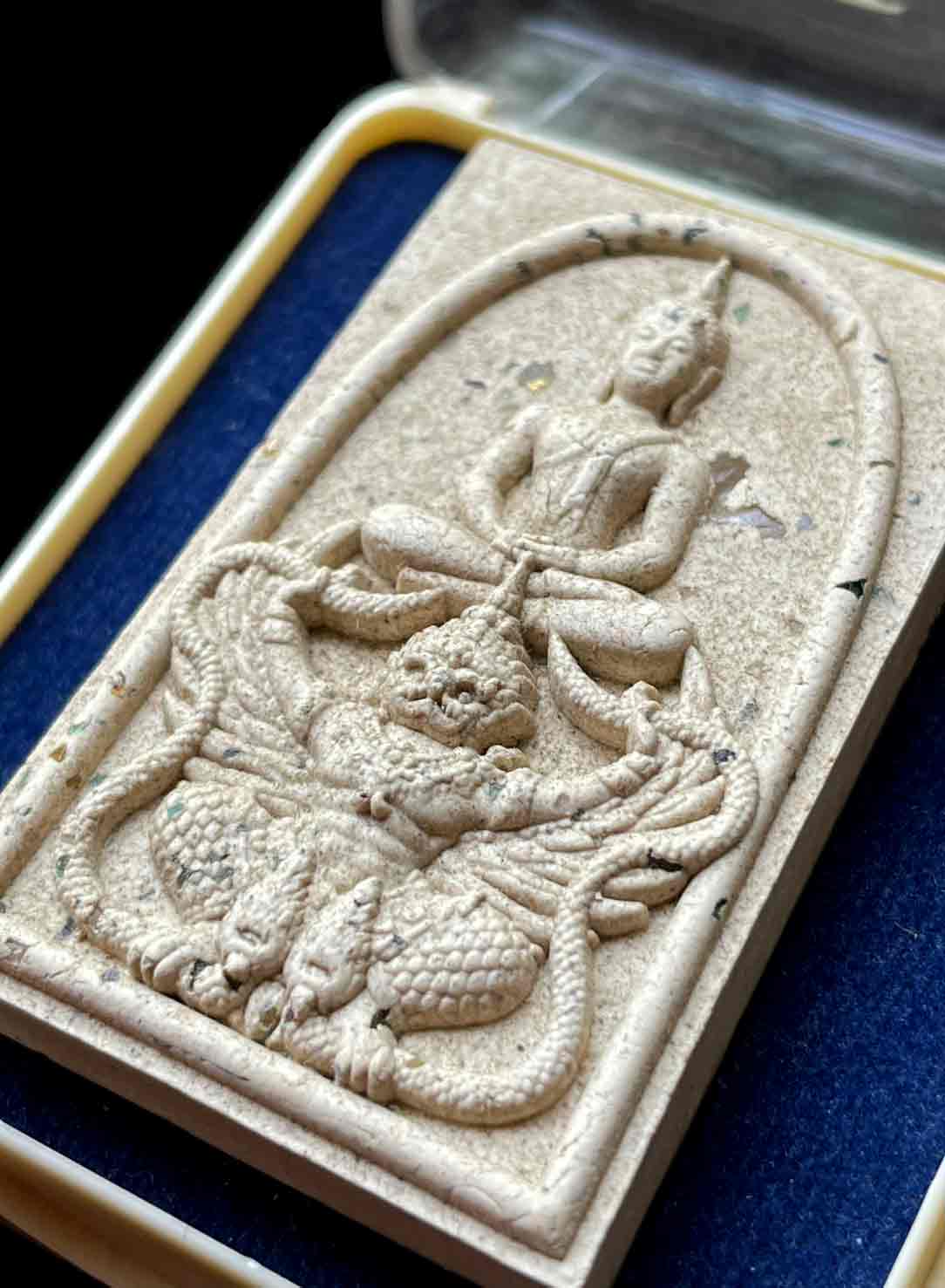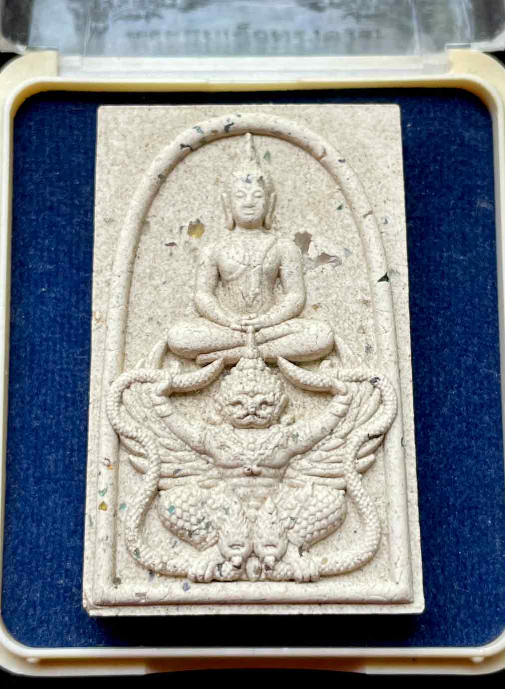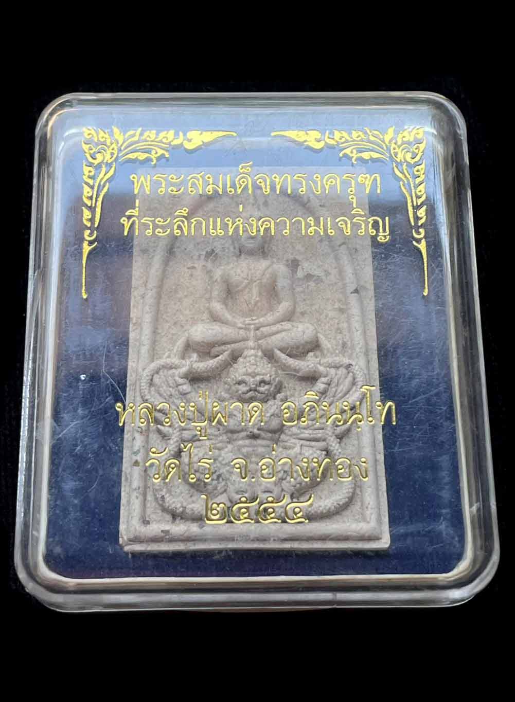 วัดใจ พระสมเด็จทรงครุฑ หลังยันต์จักรนารายณ์ เนื้อผงอิทธิเจสีขาว ผสมกระจกหน้าบรรณวัดไร่ ปี 2554 หลวงปู่ผาด วัดไร่ อ่างทอง พร้อมกล่อง |