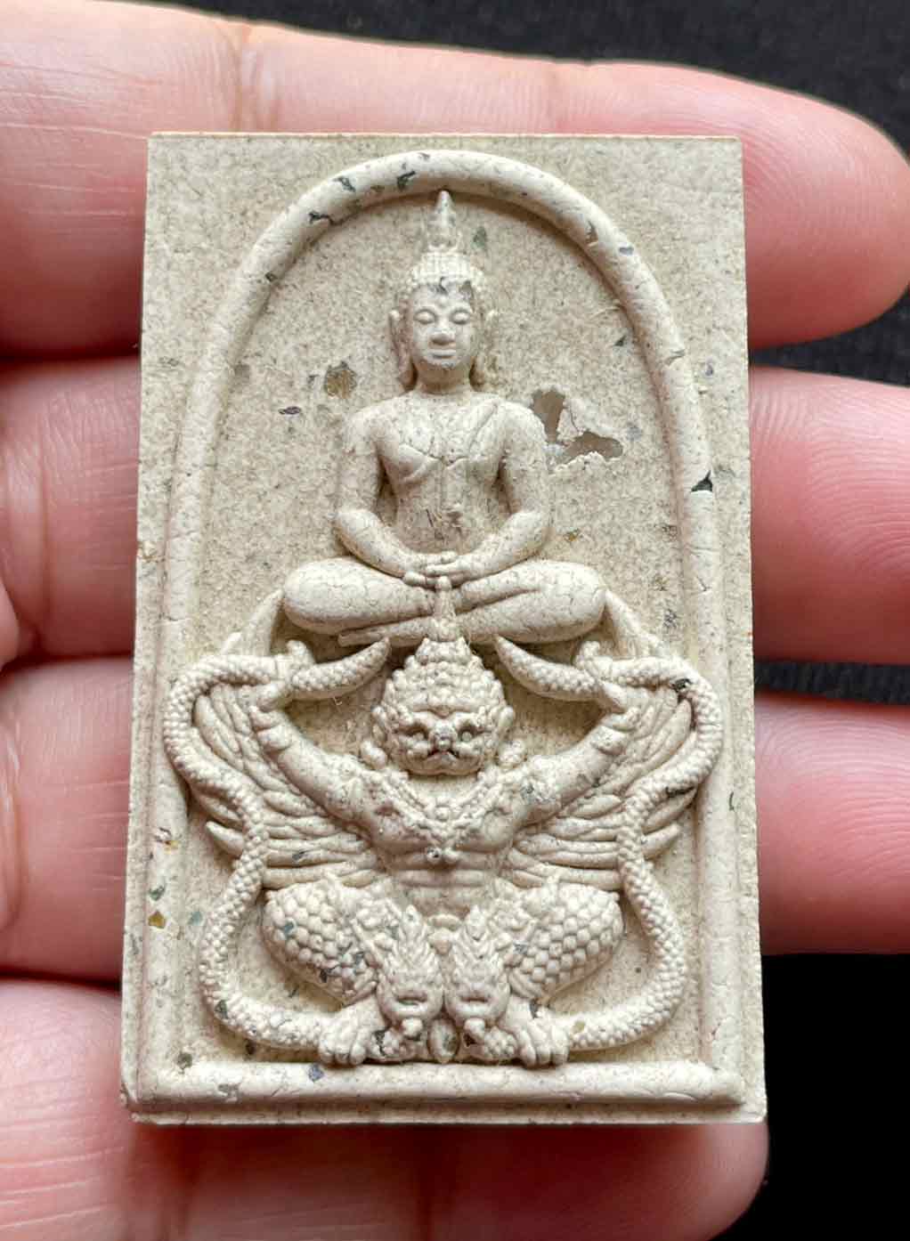 พระสมเด็จทรงครุฑ หลังยันต์จักรนารายณ์ เนื้อผงอิทธิเจสีขาว ผสมกระจกหน้าบรรณวัดไร่ (โค๊ตครุฑ)(โค๊ต ก)