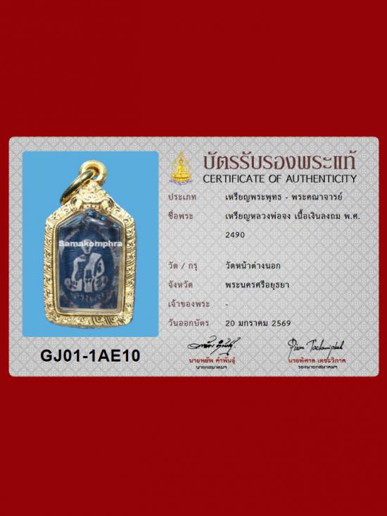 เหรียญรูปเหมือน หลวงพ่อจง วัดหน้าต่างนอก เนื้อเงิน ลงถม สร้างในปี พ.ศ. 2490 จำนวนการสร้างน้อยมาก ไม่เกิน 100 เหรียญ พระสภาพสวยแชมป์ เลี่ยมทองอย่างดี มีบัตรรับรองจากสมาคมฯ