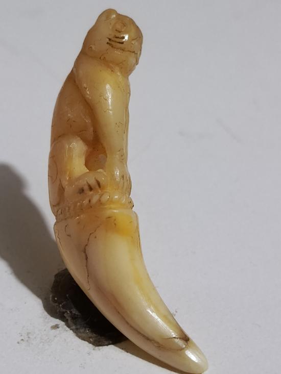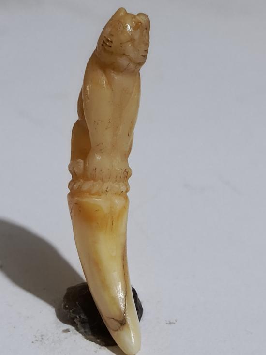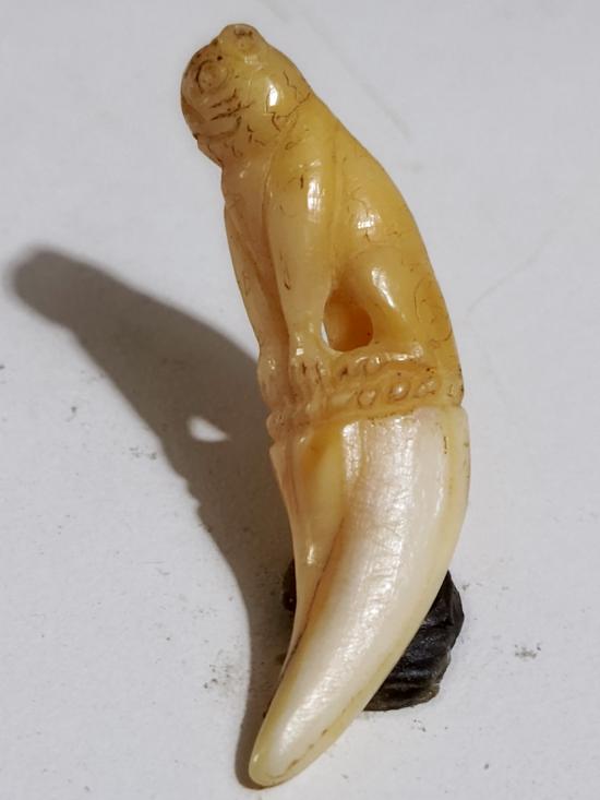 เครื่องราง เขี้ยวเสือ แกะรูปเสือเก่า ขนาด 2 นิ้วหนา 1.5 นิ้ว ศิลป์ ทรงสวย มีจารย์ของทนสิทธิ์มีดีในตัว แม้ไม่ต้องปลุกเสก เป็นมหาอำนาจ หายาก |
