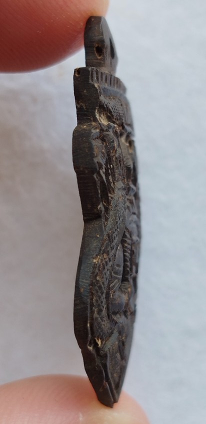 เสมาราหู กะลาตาเดียวแกะ เป็นงานแกะใหม่ ยังไม่มีการจาร |