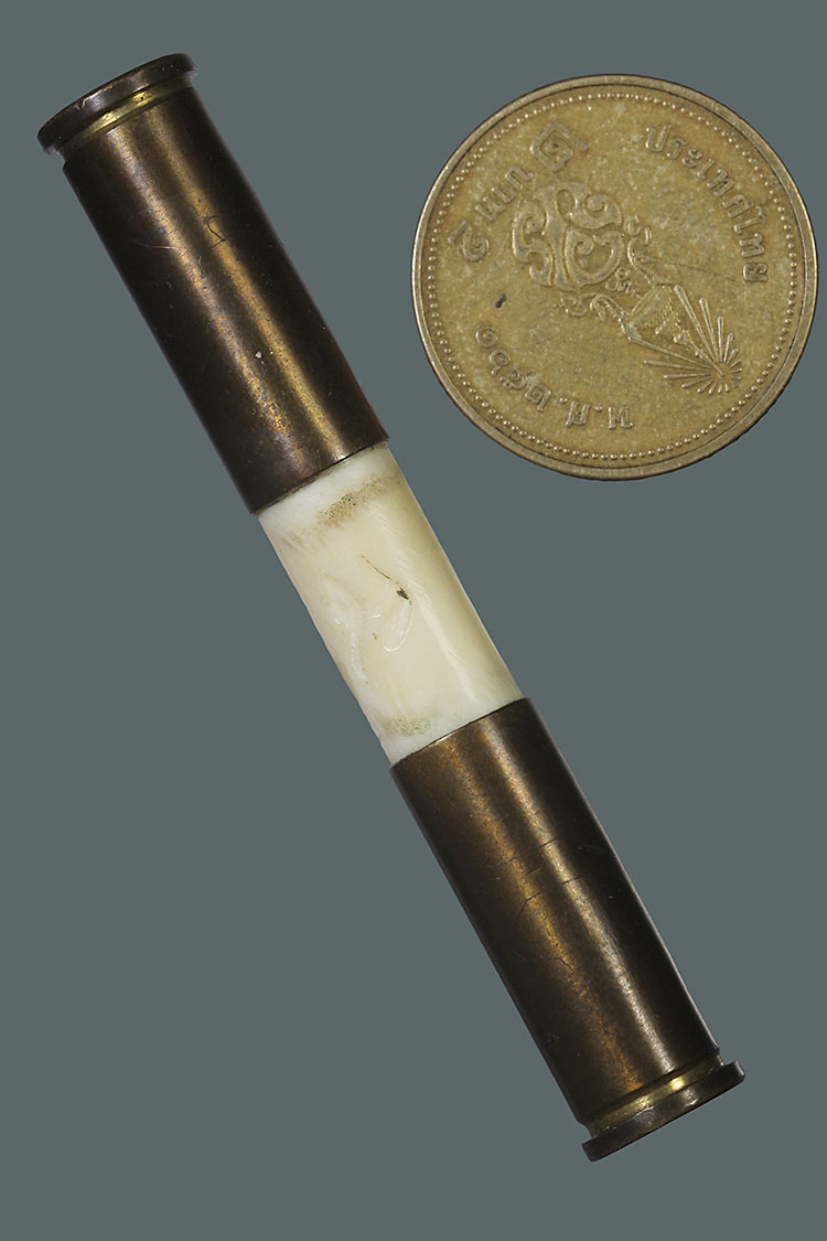 วัดใจ**ตะกรุดกระดูกช้าง ตะกรุดปลอกลูกปืน หุ้ม กระดูกช้าง หลวงพ่อเอื้อน วัดวังแดงใต้*{ มีรอยจารมือหลวงพ่อ }*สร้างน้อย....เดิมๆครับ |