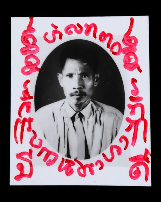 รูปถ่ายฟิล์มล้างมือโบราณ ฉากนิยม "กลมอู่" พ่อเที่ยง น่วมมานา บ้านมีดี จารหน้าหลัง