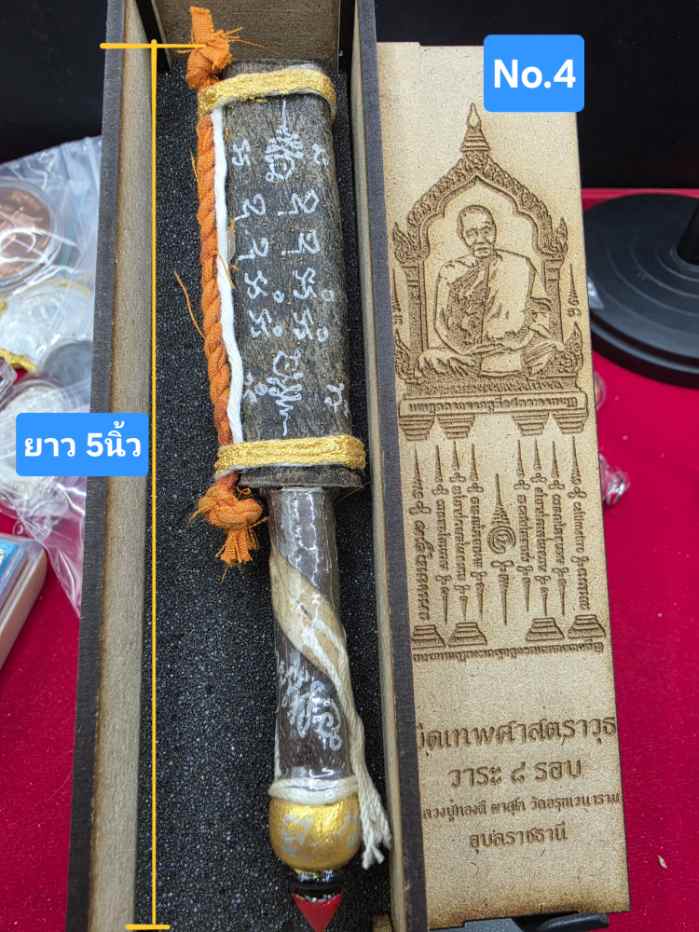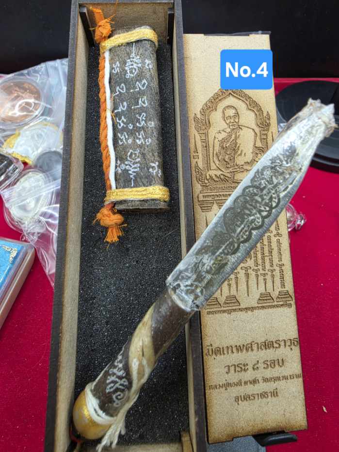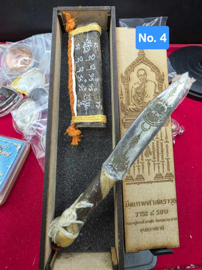 มีดหมอหนังช้างแท้ 2หน้า ลายยันต์ปิดตา กับ นาคเกี้ยว No.4 วาระ 8 รอบหลวงปู่ทองดี จังหวัดอุบลราชธานี พร้อมกล่องไม้เดิมๆ |