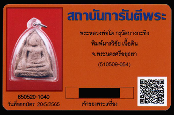 พระหลวงพ่อโต กรุวัดบางกระทิง จ.พระนครศรีอยุธยา พิมพ์มารวิชัย เนื้อดิน พระไม่มีหักซ่อม มีบัตรรับรอง ปัจจุบันไม่มีเลี่ยมพลาสติกแล้ว ใครสนใจเชิญครับ
