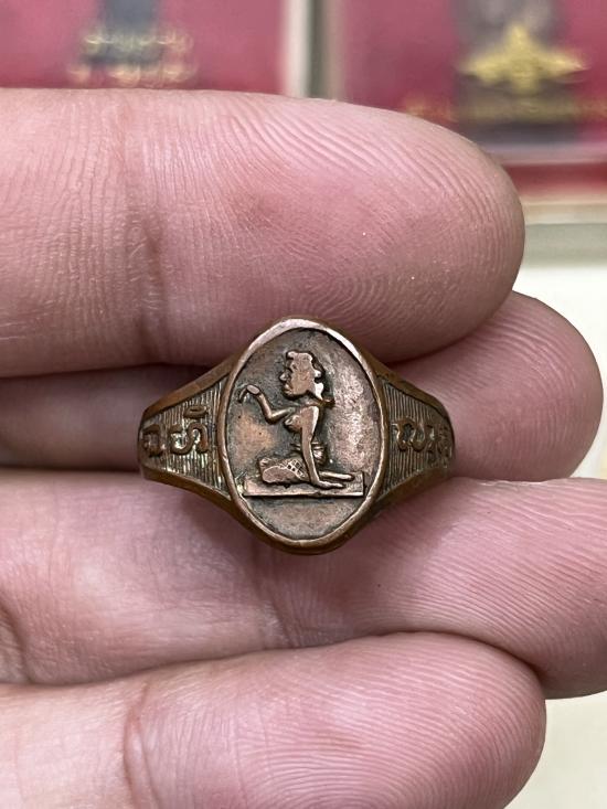 แหวนปั้มนางกวักข้างยันต์ เนื้อทองแดง เก่า ปีลึกๆ ไม่ทราบสำนัก