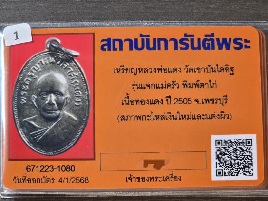 เหรียญหลวงพ่อแดง แจกแม่ครัว มีตาไก่ เนื้อทองแดงกาหลั่ยเงิน บัตรระบุว่ากาหลั่ยใหม่นะครับ พิจารณากันครับ