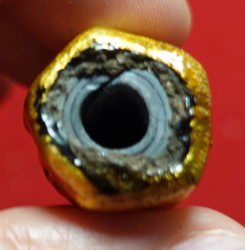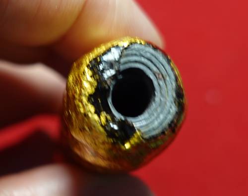 แผ่นตะกั่ว ความยาว 3 นิ้ว จารยันต์และหมายเลข ๑๒๙