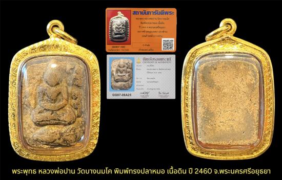 พระพุทธ หลวงพ่อปาน วัดบางนมโค พิมพ์ทรงปลาหมอ เนื้อดิน ปี 2460 จ.พระนครศรีอยุธยา