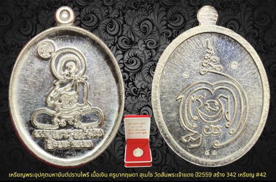 เหรียญพระอุปคุตมหายันต์ปราบไพรี เนื้อเงิน ครูบากฤษดา สุเมโธ วัดสันพระเจ้าแดง ปี2559 สร้าง 342 เหรียญ #42 เคาะเดียว