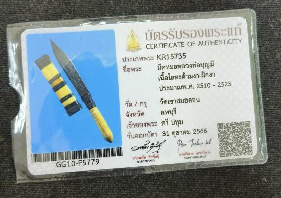 มีดหมอหลวงพ่อบุญมี เนื้อโลหะด้ามงาฝักงา ปี2510-2525 วัดเขาสมอคอน จ.ลพบุรี พร้อมบัตรรับรองสมาคมฯ