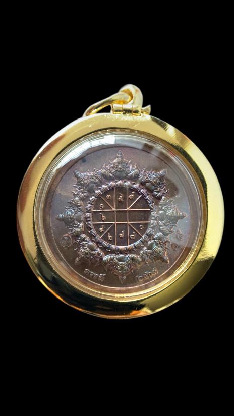 เคาะเดียวแดง จตุคามรุ่นดวงดีปี2569 เลข19(๑๙)เนื้อนวะโลหะหน้ากากชุบทองลงยา เลี่ยมกรอบเดิมจากวัด