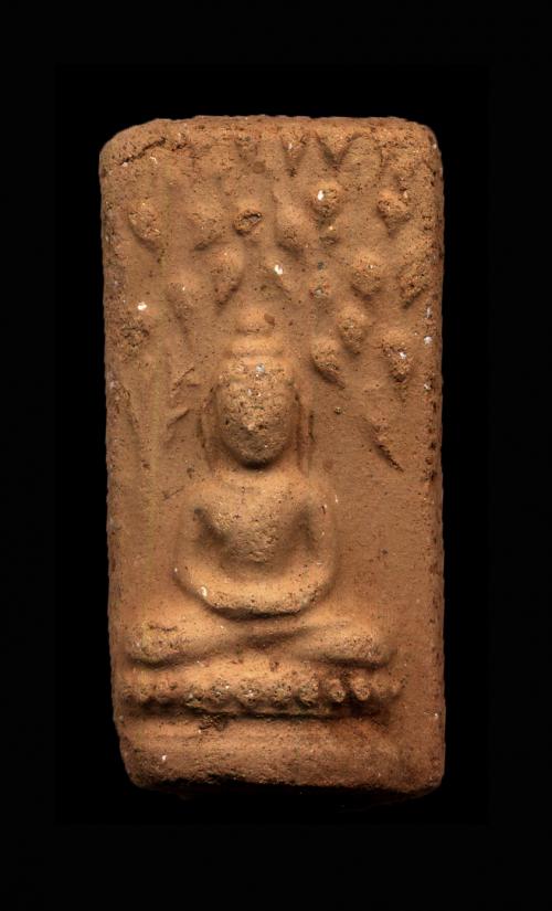 พระเนื้อดินผสมผงกระดูกผี หลวงพ่อเจิม วัดหอยราก พิมพ์ปรกโพธิ์ใหญ่ โพธิ์เต็ม ปี 2499 หลังยันต์ จ. นครศรีธรรมราช
