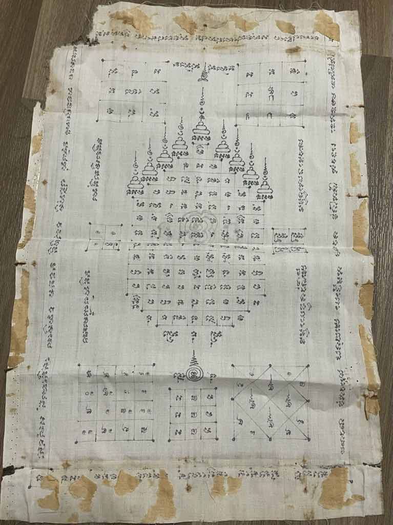 ผ้ายันต์ จารมือ สภาพตามรูป มีลายจารลายเซนต์ หลวงพ่อมหาสุรศักดิ์