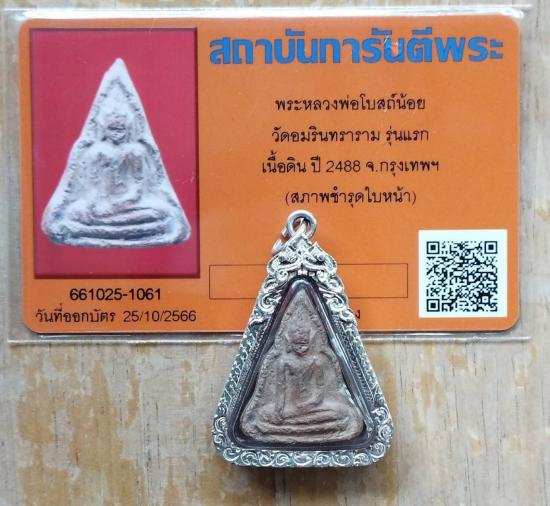 รุ่นแรก ปี2488 พระหลวงพ่อโบสถ์น้อย เนื้อดินเผา วัดอมรินทรารามฯ จ.กรุงเทพฯ สวยเลี่ยมเงิน+บัตรรับรองเวปG