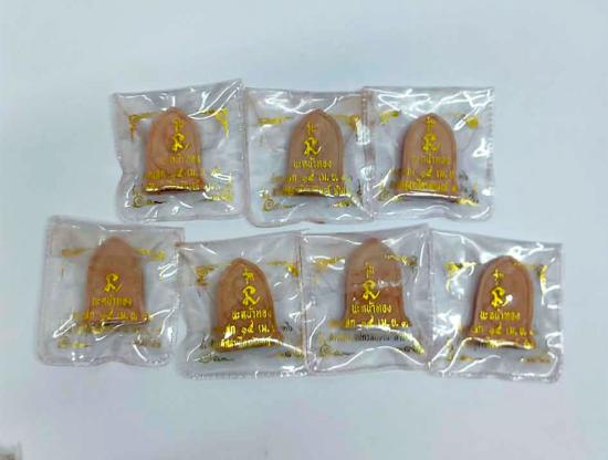 พระผงหลวงพ่อเกษม เขมโก รุ่นนะหน้าทอง (ฝังตะกรุดเงิน) พร้อมซองเดิม 7 องค์ |