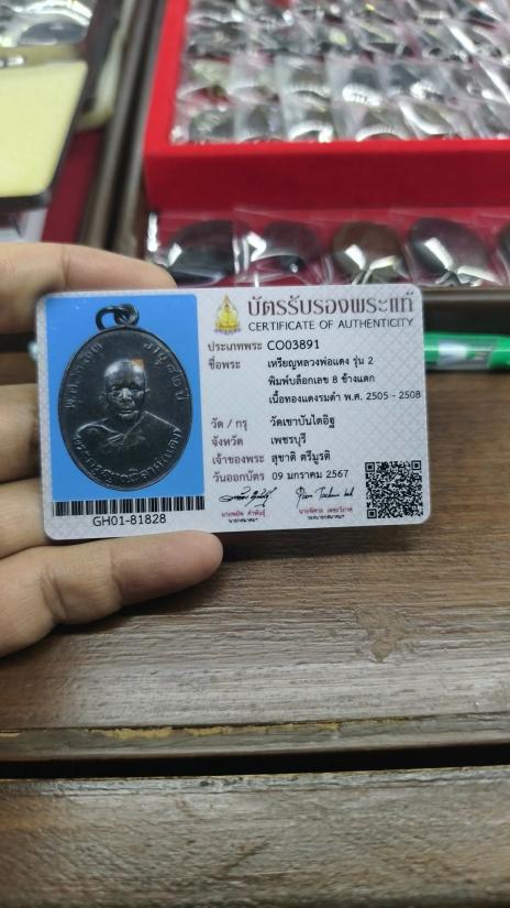 เหรียญรุ่น 2 พ่อแดงวัดเขาบันไดอิฐ บล็อกแปดแตกข้าง มาคู่บัตรสมาคม